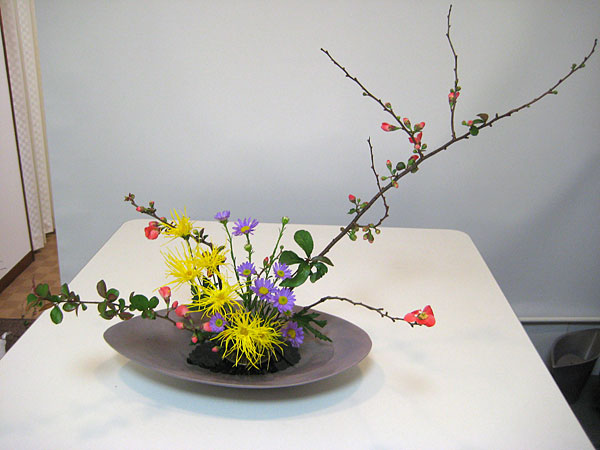 たまたまyoutubで 眠気覚ましのイケメンBGM用に プレイリストを作ってたら、 ミュージカルばかりになってしまった。 そのとき、以前大大カンゲキした トニー賞授賞式の時の 「wicked」のパフォーマンスを見つけてしまった! なんと、今見るとこのエルファバ役の女優さん、 「RENT」にでてた人だわ! そして何度も見るウチに どうしても「wicked」が見たくなってしまった。 劇団四季のでもいい!UFJでもいい! みたい〜〜〜〜〜っと思っってたら、 なんと映画化が勧められているらしい。 とりあえず、まだ先みたいだけど ガマンすることに・・・・。 それまではyoutubeでガマンがまん。 プレイリストはこちら ↓ 睡眠不足を乗り切って、 ぐっすり眠った日のいけばな。 なんていうか、乾いてパサパサになった神経が うるおう感じがする・・・。 なんかの雑誌で読んだんだけど、 自然に触れて得るエネルギーを「自然力」というらしい。 小規模だけど(笑)、 こんな小さな花にもあるのかもね。 花材:嵯峨菊、蝦夷菊(アスター)、木瓜 嵯峨菊っておひたしみたい、なんていいながら 今回は水盤に石を敷いて生けてみました。 自然の色ってどうしてこんなにきれいなんだろうね。 黄色と紫の組み合わせなんて とてもむずかしいはずなのに しっくりくるのが不思議。 色をまとめる、いらないと思っていた枝も利用できる、 葉っぱは形を整えるとき指先でちぎる などなど、教えていただきました。 なんと、万葉集には1句も菊が詠まれないんだって! 菊は中国から渡来したもので、 万葉の時代にはまだ渡来していないか、 さほど広まっていなかったらしい。 へぇ〜、なんか日本の花って気がするのにね。 もろ共に おきゐし菊の 朝露も ひとり袂に かヽる秋かな (源氏物語) |