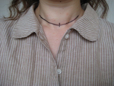 前回まではこちらから 手術前日。 同室の方が同じ手術日、同じ担当医で 彼女が朝から、私は彼女の手術が終わり次第ということだった。 「明日は何も食べられないね〜」 「明日頑張ろうね〜」 なんて励まし合いながら、手術の準備をした。 (こういうところはやっぱり大部屋だと良いね) 手術に必要な準備品 ●浴衣(私は寝間着としての浴衣は苦手だ。だからちょっと高かったけど、前で紐で結ぶタイプのかわいいネグリジェを探したんだ〜) ●T字帯(病院で購入。つまりふんどし;汗) ●曲がるストロー ●カップ ●ティッシュ それらの準備品を、看護師さんにチェックしてもらって、 明日はまとめてベッドの上に置いて手術に向かうそうだ。 お風呂もしばらくは入れないから、入って髪を洗った。 私はロングなので、手術当日はどうしたらいいのか聞いたら、 どちらにしてもキャップをかぶってしまうので そのまま(結んだりしなくても)で良いとのこと。 手術前日は食べるのは21時まで。飲み物は24時まで。 別にお腹は空いてなかったけど 明日何も食べられないと思ったら、 なんか食べたくなって(笑)、 夕食の後にヨーグルトを買って食べた。 「眠れますか?睡眠導入剤必要ですか?」 う〜ん。いらないなぁ。 なんだか思ったより、普段通りの私。 それほど心配じゃないし、怖くもない。 といいつつ、実は万が一を思って、 入院早々、ノートの片隅に遺書を書いてみた(笑)。 お葬式の費用とか、お墓のこととか(笑)、 いろいろ書きつつ、なんかアホらしくなってきて、 ノートの最後の締めは 「こんな事で死ねるもんか」だった。 だって、まだまだやりたいことたくさんあるもん。 ダンナもかわいそうだしさ。 ほんとに普通通り眠れた手術当日の朝、 みんなの朝食の匂いに心惹かれながら、 早速、脱水防止のために点滴が始まった。 あ〜、点滴はユウウツ。なんか一気に病人ぽい。 それから担当医がやってきて、 手術の切る位置を確認しに来た。 「ここに、ちょうど良い印がありますね〜。 (それはつまりシワだよね;苦笑) ここにしましょう〜。」 と、明るくマジックで書かれた(笑)。 センセ、明るすぎ。 そんなこんなで、なんと10時には 実家の両親と弟夫婦、甥っ子まで総出でやってきた。 (3人ってきいてたのに) いくらなんでも早すぎ(汗)。 手術開始が12〜14時の間だよ。 それにこの病院のまわりは、見事に何もないし。。。 デールームという、 患者さんや見舞客が団らんするスペースがあって、 そこの冷蔵庫にお菓子や飲み物を袋に入れて 名前を書いておけば保管できる。 昨日のうちに用意しておいて良かった〜。 手術日ということで ウチの家族以外にも 何組か手術を待っていて、 デイルームは人でいっぱい。 お昼にはダンナもやってきて、 まだまだこれからの長い時間を 過ごすのであった。 つづく 普段朝食を食べない私が朝からパン2つっていわれてもね〜。 最初は勢いで(いや、もったいないから?)完食してたけど、 だんだん食べられず残すようになってきた。 だって動いてないし、太ってきた気がするし。。。 すこぶる退屈な日々を過ごしながら入院して2日後 入院してからの検査結果が出て、 手術についての説明があった。 検査結果はだいたい同じ。 甲状腺乳頭ガン(右葉13mm) 手術:甲状腺右葉摘出峡切除・気管周囲リンパ節郭清 気管周囲リンパ節郭清というのは つまり癌が転移した周辺リンパ節をとること。 え?なんだ、やっぱり転移するんじゃない? と驚くところだけど、 これは非常に良くあることで、 転移したリンパ節も進行が遅く 他に臓器に転移してしまうのは非情に稀なんだそうだ。 ただし、左葉の腫瘍が今回のエコー検査では、 「鑑別不明」から「強く疑われる」に変わってしまい、 限りなく黒に近いグレーに。 それも、小さいがもうひとつあるそうで、 (橋本病もあるので、他にもそれっぽい影でもっと小さいのがいくつもあるそうだ) 手術方法としては、手術時に腫瘍部分を切り開いて確認、 悪性だったら、その場で全摘出するという方法もあるが、 まだ手術まで日にちがあるので、もう1度細胞診をしたいということだった。 うん、そりゃぁ、事前にわかった方が良い!。 私は、母が40代で良性だったが大きかったので半分摘出、 60代で乳頭ガンで全摘出したので まぁ、ゆくゆくは自分も2度手術するんじゃないかと なんとな〜く思っている。 だから、全摘出でも、1回ですむから 別にイヤっていう気がしないんだよね。 むしろ、再発のリスクはなるべく少なくしたいというのが本音。 このあたりは、人によっていろいろ考え方があると思うけど。 そして担当医は手術についての合併症についても説明。 たとえば、手術後に出血を起こして緊急再手術する場合があるとか 反回神経マヒ、いわゆる声帯マヒで声がかすれてしまうとか、 肺炎とか、血栓症とか、 まぁ、一応告知義務があるんだろうけど、 隣でダンナがどんどん青ざめていくのがわかる(笑)。 「非情に稀ですから〜」と